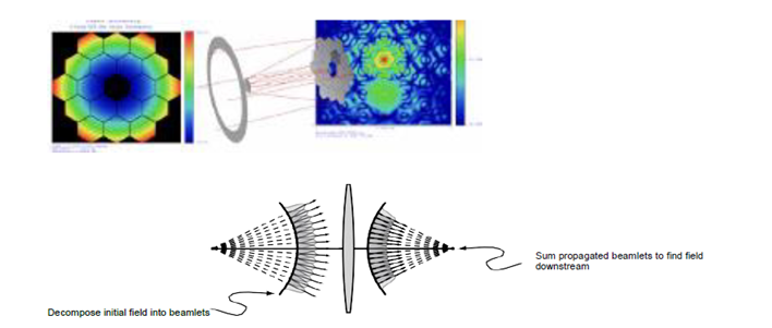CODEV的光束传播分析功能可精确预测衍射光束在光学系统中任意位置的强度、振幅及相位特性。光束合成传播(BSP)技术最初为美国国家航空航天局(NASA)开发,旨在应对"类地行星发现者"任务中对分析精度的严苛要求,现已在精度、效率与易用性方面树立行业标杆。该技术采用基于子光束的算法,并结合专有增强功能,能够对衍射波前在光学系统中的传播进行极高精度与效率的建模。BSP开创性的预分析特性可根据您的镜头系统自动推荐分析设置,并在最短时间内提供精确结果。